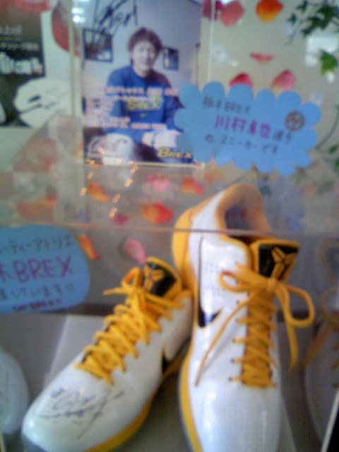 髪心店では、今日一日限り、栃木ブレックスの川村卓也選手の使用した、サイン入りシューズを展示しています。